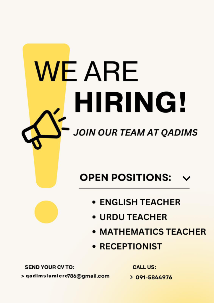 We at Qadims Lumiere are looking to appoint passionate and dedicated teachers to join our friendly and