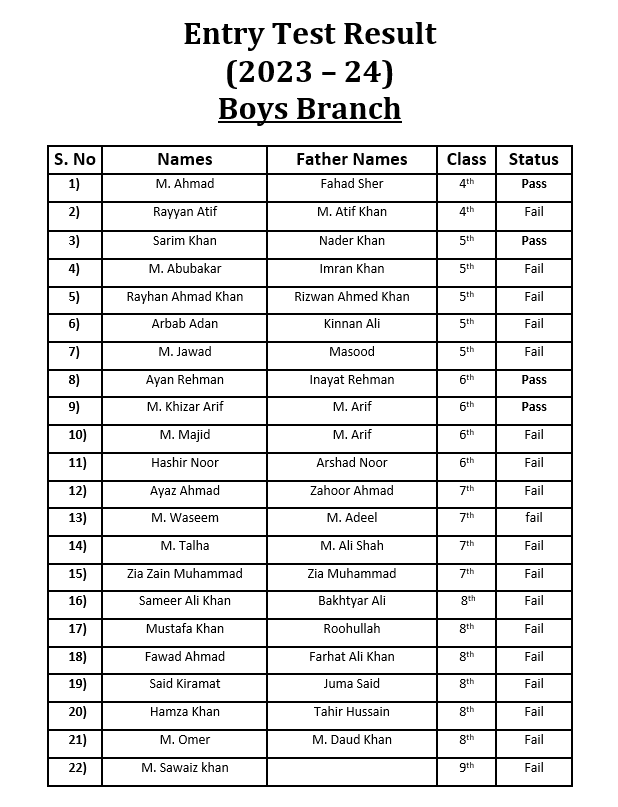 Entry Test Result Class Prep 2023-24